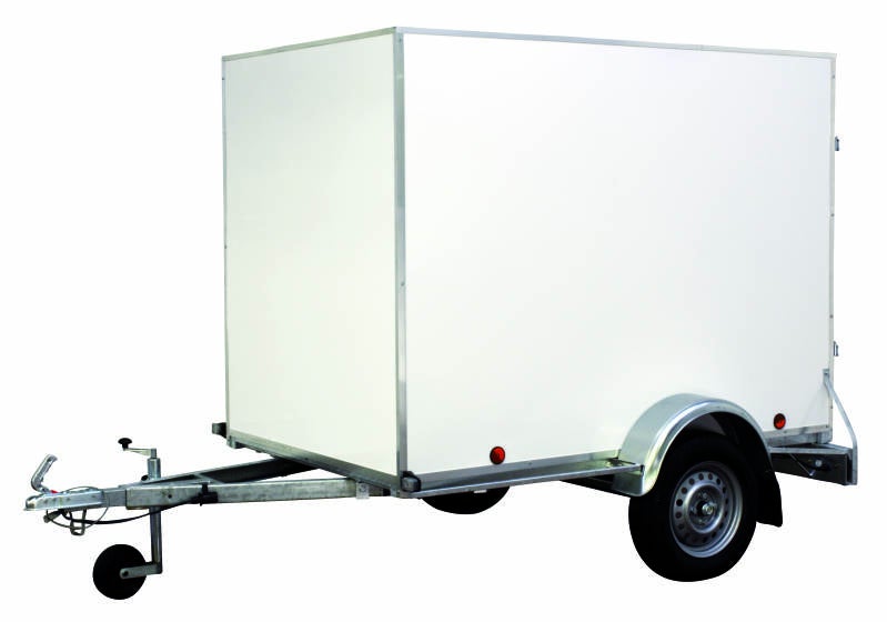 | Binnenafmeting L*B*H (mm) | Boutenafmeting L*B*H (mm) | Assen ongeremd | Hoogst toegelaten gewicht HTG (kg) | Toegelaten laad- vermogen (Kg) | Tarra (kg) | Banden |